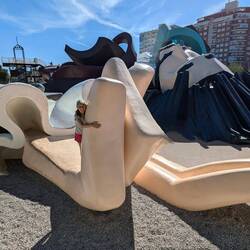 Mit den Fahrrädern hinten auf dem Bulli nach Valencia rein. Haben eine schöne Fahrradtour durch den Gulliver-Park, einem ausgetrocknetem Flussbett mitten durch Valencia, gemacht.