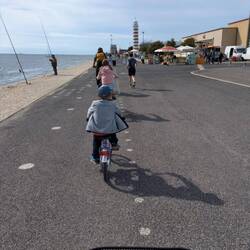 Heute sind wir mit dem Rad zur Fähre und wollten dann über den Tajo rüber nach Lissabon. Benny hat uns eine spitzen Fahrradroute 👍 zum Anleger rausgesucht 🫣 (erster Stopp war tatsächlich derEn savoir plus