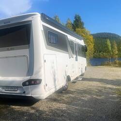 Durch Schwedisch Lappland leider ist der Wind 💨 heute etwas stärker Böhen bis 50 km/h sind beim fahren nicht sehr angenehm aber wie wir wissen geht’s ja auch schlimmer was nicht der Fall war.Leer más