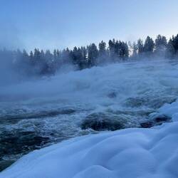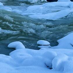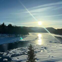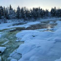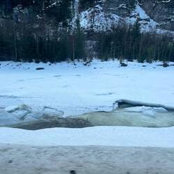 Gestern Sonne 🌞 Heute Sturm 🌬️ und Schnee ❄️ , der Fluss ist zwar gefroren und mit Schneebedeckt sieht doch toll 😊 aus und eine kleine Wanderung zur Kirche ⛪️ ist auch bei hudel Wetter machbar 🤣😏