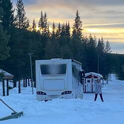 Nach 150 km in 2.38 Stunden sind wir auf dem CP von Storuman angekommen, wieder durch Winterliche Landschaft und Wälder, sowie verschneite eisige Strassen.