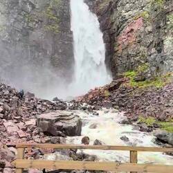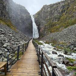 und los geht’s, zum Wasserfall sein Name Njupeskär Waterfall. Das Wetter wolkig ⛅️ und Windig 🌬️, aber schön war’s.