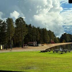 Als Belohnung finden wir einen Stellplatz am Badestrand von Åsele mit schöner Aussicht auf See undRead more