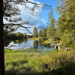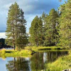 Bei schönem Wetter mit Windböen 💨 fahren wir bis nach Glåmos kurz vor Røros . Kaum angekommen fängt es an zu regnen 🌧️ ziemlich nass😂 nichts mit Beine Vertreten 🤗 .