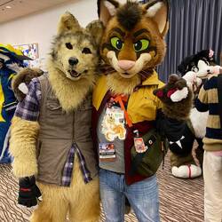 It seemed that some dealers had already packed up and left by the time Atsu and I came down to the Dealer's room. My suspicion was that because the big Fursuit Photo was happening at the same time as the Dealer's room closing that people were leaving so they could be in the picture. We also were about to be late for the picture so we rushed back to the room to suit up and get ready for the big group photo!