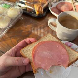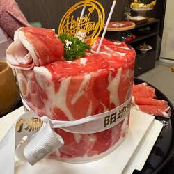 Since Buboli’s birthday was recently, they ordered a "cake" to celebrate. This wasn't a normal cake though, it was a pulled meats "cake"! The meat was adhered to a plastic mold to keep the shape. It was very cute and I had not really seen anything like that before.