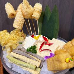The dipping sauce was a unique sesame paste. Buboli explained the creation process of this but I don’t remember it at all. Sometimes all of these new things are just information overload. We tried different tofu types, including fried tofu and a specific kind made by skimming the dried skin off the top of the soy milk and rolling it up. I'm not sure what it's called exactly, but the texture was great!