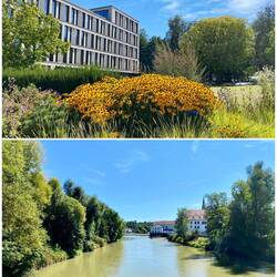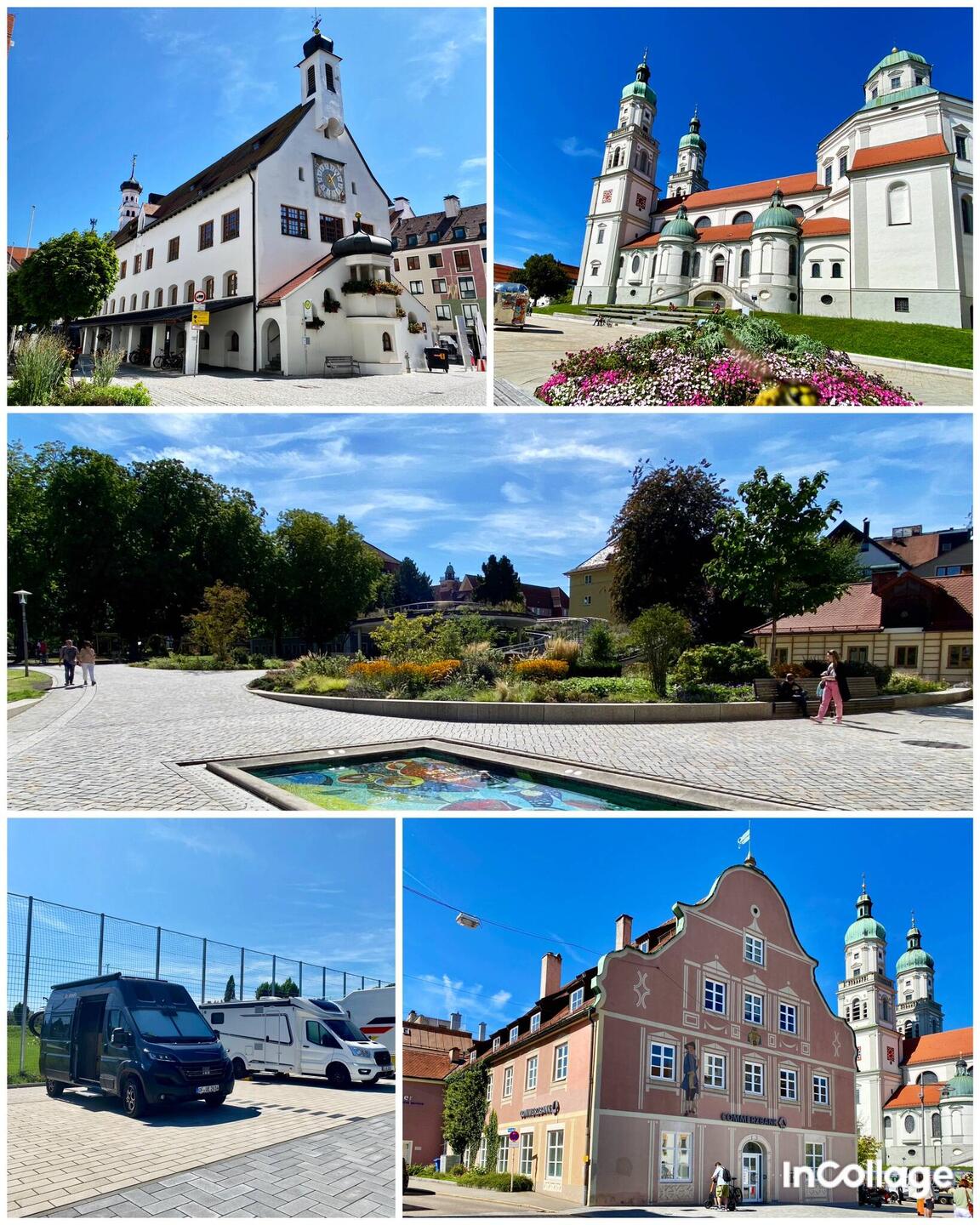 Nach unserem ersten Zwischenstopp gestern nur eine Stunde von daheim entfernt sollte es heute bis in den Allgäu gehen. Am liebsten wären wir heute schon bis Oberstdorf gefahren, aber dort unten war alles ausgebucht übers Wochenende. Deshalb hatten wir uns Kempten als Alternativziel rausgesucht - die Stadt kannten wir beide noch nicht und es gibt dort einen sehr neuen zentral gelegenen Stellplatz mit guten Bewertungen. Kurz nach 8 Uhr starteten wir unsere Tour. Die Autobahn war teilweise recht voll, da war einiges an Ferienverkehr unterwegs, so wie wir auch 😉. Man kann online sehen, wieviele der 38 Plätze auf dem Stellplatz frei sind. Über Nacht war er voll belegt, aber morgens wurden einige Plätze frei und so bekamen wir, als wir mittags ankamen, zum Glück noch einen freien Platz. Wir frühstückten noch im Camper, dann starteten wir zur Stadterkundung. Der Stellplatz liegt direkt an der Iller, nur wenige Fussminuten vom Zentrum entfernt.