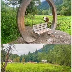 Die Sonne hielt immer noch durch und so spazierten wir in den sehr nahe gelegenen Ort - was für eine Idylle. Wiesen mit grasenden Kühen, eingerahmt von Bergen auf allen Seiten und alles ne ganze Ecke ruhiger und beschaulicher als Oberstdorf.Read more