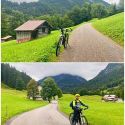 Wir radelten wieder zurück und stoppten in Oberstdorf, wo wir uns im Restaurant „Zum wilden Männle“ einen Tisch reserviert hatten. Wir genossen die Bayrische Kost in uriger Atmosphäre, bevor wir zurück zum Camper radelten. Jetzt zu später Stunde hatte sich dann endlich die Sonne ein wenig herausgekämpft. ☀️Read more