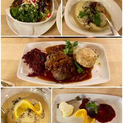 Für heute Abend hatten wir uns im Restaurant auf dem Campingplatz einen Tisch reserviert - das kam uns sehr gelegen. Es gab lecker Hirschgulasch mit Semmelknödel und Preiselbeer-Birne.Read more