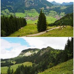 Von der Bergstation hat man schöne Blicke auf die einzelnen Ortsteile von Bad Hindelang und Sonthofen. Später dann immer wieder Blicke auf die Berg- und weidelandschaft des Allgäus.