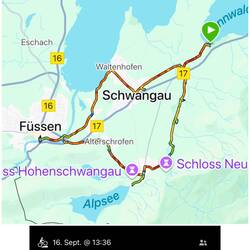 Nach der Wanderung setzten wir unseren „Mini-Roadtrip“ durch den Allgäu am Nachmittag - nächstes Ziel war Schwangau bei Füssen. Der Weg führte uns über den Oberjochpass - Deutschlands kurvenreichster Straße - über 100 Stück und immer nach oben. Trotz viel Gegenverkehr (inkl. Busse) fuhr es sich ganz gut - sowohl Oberjoch als auch die Gegenden danach machten Lust auf einen weiteren Wanderurlaub hier. Direkt um die Ecke liegt das Tannheimer Tal, auch das steht noch auf unserer Liste für einen späteren Urlaub.