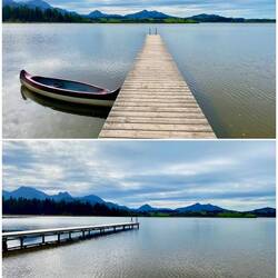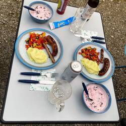 In Hopfen war jede Menge los - alle Parkplätze belegt und viele spazierende Touristen. Man kann’s verstehen, der Blick über den See in die Berge ist wirklich richtig schön. Uns war’s allerdings zu trubelig. Wir umradelten den See (ca. 7km) und fuhren von dort über Füssen und Schwangau zu unserem Campingplatz zurück. Auf dem Weg kauften wir noch schnell Würstchen beim Rewe, die gabs dann am Abend gegrillt zusammen mit Kartoffelbrei und Grillgemüse und als Nachtisch einen selbst „zusammengemixten“ Himbeer-Quark mit Heidelbeeren und Schokosplittern.Read more