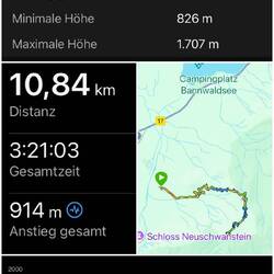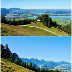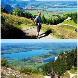 Wir zumindest kamen gut voran, waren schon nach 1:45h oben. Unterwegs gab es immer wieder hübsche Ausblicke - zunächst auf das Schloss Neuschwanstein, später auf immer mehr Seen der Umgebung - Alpsee, Schwanensee, Weißensee, Hopfensee, Forggensee, Bannwaldsee und auch Füssen und den Lech. Was für eine herrliche Gegend! 😍