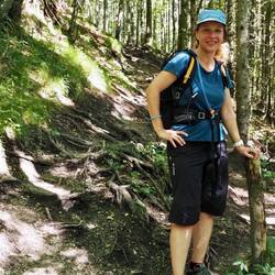 Nach unserer Rast absolvierten wir noch die letzten Höhenmeter bis zum Gipfel, hier wurde der Weg deutlich rutschiger, wurzeliger und steiniger. Unser Track sollte auf der anderen Seite hinunterführen. Die Leute, die von dort aufstiegen rieten uns allerdings mehr oder weniger von der Route ab, da sie wohl sehr steil, nass und rutschig ist. Darauf hatten wir wenig Lust, wählten also den Aufstiegsweg auch für den Abstieg. Hätten wir das vorher gewusst, hätten wir den angedachten Track wohl in umgekehrter Richtung in Angriff genommen. Solche schwierigen Passagen sind Berghoch ja oft deutlich angenehmer als bergab. Seis drum - so hatten wir auch auf dem Rückweg wieder tolle Ausblicke.