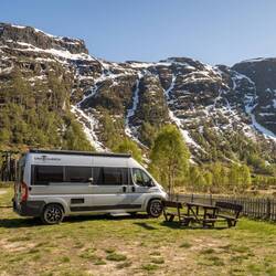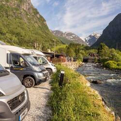 Von Flam durch den Tunnel nach Gudvangen, dort auf die Fähre und per Schiff durch den Naroyfjord nach Kaupanger. Von Kaupanger mit dem Camper weiter nach Norden auf den Moldenwanderparkplatz.