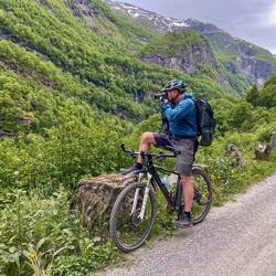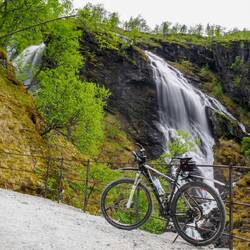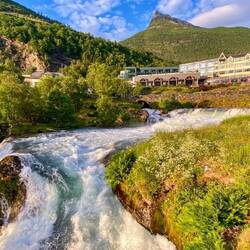 Fahrt nach Flam, nachmittags mit Flambana hoch nach Myrdal und dann mit den Mountainbikes die 20km und 800 Höhenmeter zurück durchs Flamdalen nach Flam