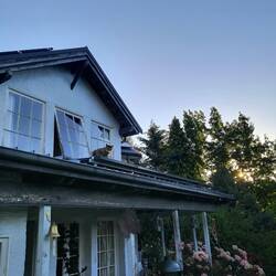 While we all enjoyed our pizzas Mocha, the cat, was watching from the roof.