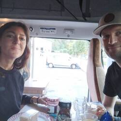 Arrivés à Bilbao, pas de place au camping, donc direction le centre ville en empruntant des rues pittoresques mais Maud a une gestion parfaite de Waze...