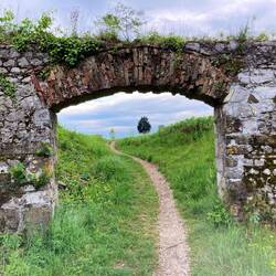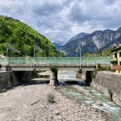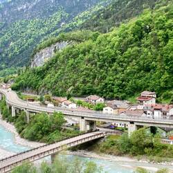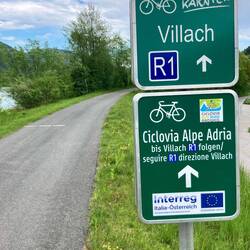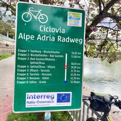 Heute geht es von Villach bis nach Venzone. Nach der gestrige Tour an der Drau, fahre ich die ersten Kilometer im Frühnebel am Fluss Gall. Zuerst noch ohne Steigungen, aber in der ersten Kilometern geht es von 500 Höhenmeter hoch auf über 820 … Steigungen teilweise zwischen 15 und 25 Prozent. Da heißt es schieben und den E-Bikern hinterschauen. Unspektakulär und fast ein wenig schäbig die Grenze nach Italien. Von Grenzbeamten keine Spur, nur ein Hinweis auf den nahen Dreiländereck Österreich-Italien-Slowenien. Allmählich wird es wärmer und ich freue mich den höchsten Punkt der heutige Etappe zu erreichen. Ab jetzt geht es auf unglaublichen 50 Kilometern bis Venzone nur noch bergab… auf einer ehemaligen Bahntrasse verläuft nun der Ciclovia Alpe Adria Radweg - dazu ein kurzer Text aus dem Netz: Die Bahnstrecke Udine–Tarvisio, deutsch Pontafelbahn, italienisch Pontebbana, wurde am 30. Oktober 1879 eröffnet. Die Strecke verläuft durch die durch Erdbeben gefährdete Region Friaul-Julisch Venetien nach den starken Erdbeben in den Jahren 1976 und 1978 wurde eine Neubaustrecke geplant, die einer anderen Trasse folgte und die im Oktober 2000 fertig wurde. Somit war die alte Trasse stillgelegt und stand für den Radweg zu Verfügung. Aufgrund der geographischen Bedingungen hatte die alte Bahnstrecke viele Bauwerke wie Brücken, Viadukte und Tunnel zu bieten, die meist in den Radweg eingebunden wurden.
