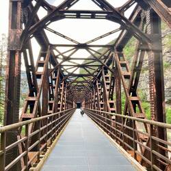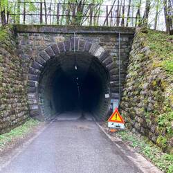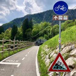 Aber vorher kam noch eine ganz böse Passage für einen nicht mehr jungen Flachländer auf einem Stahlrad ohne Motor (… ich glaube ich war der einzige ohne E-Bike!). Bei mehr als 10 Prozent Steigungen wurde denn auch geschoben. Am Ende diese Etappe musste ich durch einen (nicht gesperrten) Tunnel … 1,5 Kilometer in Kühle und Dunkelheit, während die Laster vorbei rauschen. Schließlich kam ich pünktlich am Bahnhof an und andere Radreisende hatten sich schon versammelt. Ein jüngerer Biker sprach mich auf meinen Pashley an … Ja, aber - so meinte Antwort. Er war mit einem neuen Gravel-Bike auf Tour … vielleicht wäre das doch mal eine Option für mich. Weniger stilvoll, aber leichter!