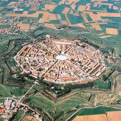 Nach einer guten Mittagsstunde und einer Dusche ging ich zum Tourismus Info … dort wurde mir ein Audio-Guide für eine Stadtführung empfohlen. Vorab ein kurzer Text aus dem Netz: „ Die Stadt Palmanova wurde im späten 16. Jahrhundert von den Venezianern gegründet. Ihr neuneckiger Grundriss zeigt auch heute noch, dass sie als Festungsstadt geplant war. Seit 1960 gilt Palmanova als Nationaldenkmal.“