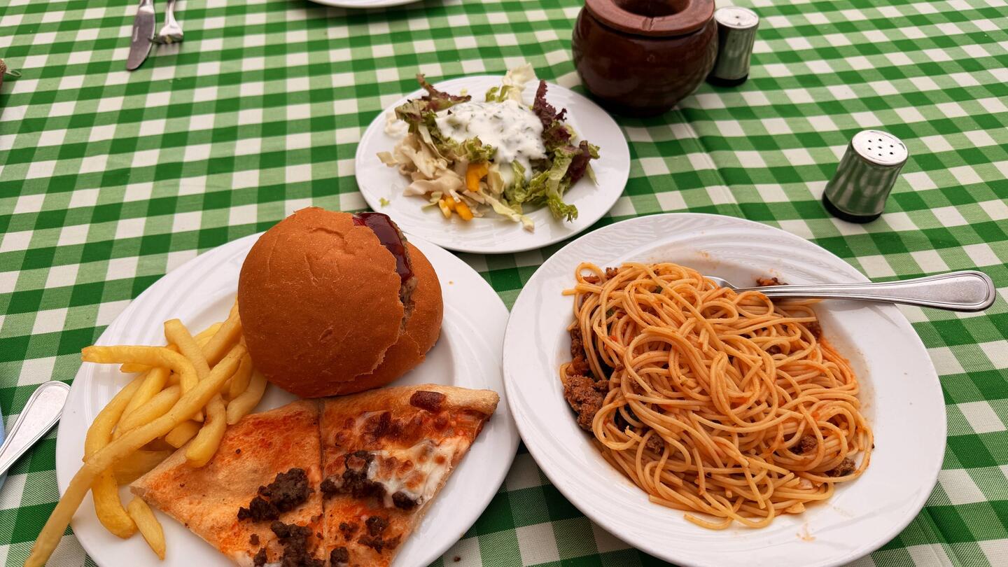 Mal die Favoriten der jüngeren Generation getestet. „Burger“, Pizza und Nudeln von der Pastastation und ein klein wenig Salat 😎