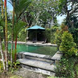 Das B&B liegt etwa 5 Gehminuten vom Ubud Palace und dem Zentrum sowie ca. 15 Gehminuten vom Monkey Forest entfernt. Die Zimmer sind im balinesischen Stil eingerichtet und verfügen über eine eigene Terrasse oder einen Balkon, ein privates Bad und meist eine Klimaanlage sowie ein Moskitonetz. Es gibt einen Außenpool, der in einen tropischen Garten eingebettet ist.
