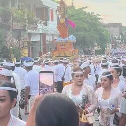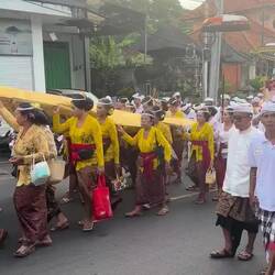 An diesem Tag ehren die balinesischen Hindus Dewi Saraswati, die Göttin des Wissens, der Künste, Musik und Weisheit. Überall auf der Insel, in Schulen, Bibliotheken, Tempeln und Privathäusern, werden den Büchern, Lontar-Manuskripten und Musikinstrumenten farbenfrohe Opfergaben dargebracht.