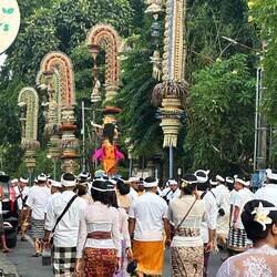 Es gibt tausende Tempel, vom kleinen Haustempel bis zu großen Anlagen wie Pura Besakih (der wichtigste Tempel Balis). Feste, Kalender, Dorfgemeinschaften und sogar Bauweisen richten sich nach religiösen Regeln.