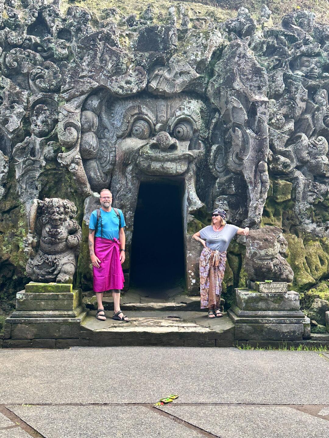 Goa Gajah, auch bekannt als die „Elefantenhöhle“, ist eine bedeutende archäologische Stätte und ein Hindu-Heiligtum auf Bali. Das markanteste Merkmal ist der Eingang, der als riesiges, weit aufgerissenes Maul eines Dämonen (oft als der Gott Bhoma interpretiert) gestaltet ist und böse Geister abwehren soll.