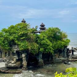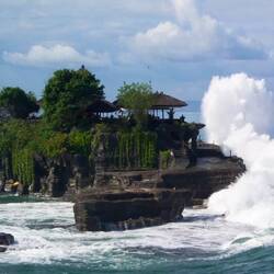 Der Pura Tanah Lot (indonesisch für „Land inmitten des Meeres“) ist einer der bedeutendsten und meistfotografierten Meerestempel auf Bali. Der Tempel liegt auf einer Felseninsel etwa 50 Meter vor der West-Küste. Er ist bei Ebbe zu Fuß erreichbar; bei Flut ist der Zugang zum Felsen oft nur eingeschränkt oder gar nicht möglich. Tanah Lot ist dem Meeresgott gewidmet, was man auch spürt. Die Lage direkt im Wasser, die Wellen, die den Felsen umtosen und die Tatsache, dass der Tempel bei Flut scheinbar unerreichbar wird, verleihen ihm eine mystische Aura.