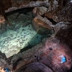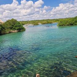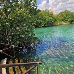 Auf dem Weg zu den Ruinen von Coba, der 2.grössten Maya-Stätte, haben wir in einer wunderschönen Cenote im stillen Wasser,in Süßwasser, baden können, bevor der Touristenrummel los ging. Es warRead more