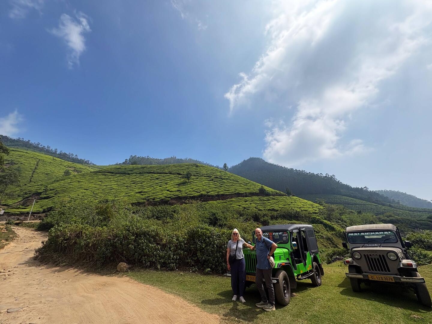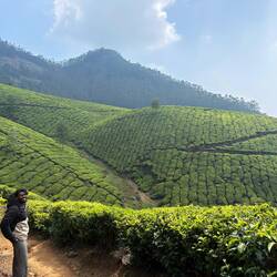 Indian FunJudy HubbardMuttukad January 28 in India ⋅ ⛅ 25 °C Up early for yoga followed by a boneshaking drive by jeep to the highest tea plantation in India. We watched the clouds rise in the early morning and posed by Lion rock. 3 likes Trip