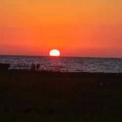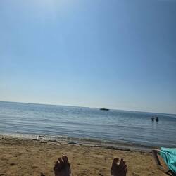 Jolie journée à la plage ou Barbara s’est fait grignoter le genou par un poisson🤣🤣, diner au bord de mer et petit apéro avant de souper