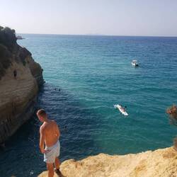 We rented a boat at the Agios Georgios beach and enjoyed a full day of sailing along the northwest coast. We stopped at a few beaches only accessible by boat. It was relaxing and worth every penny.
