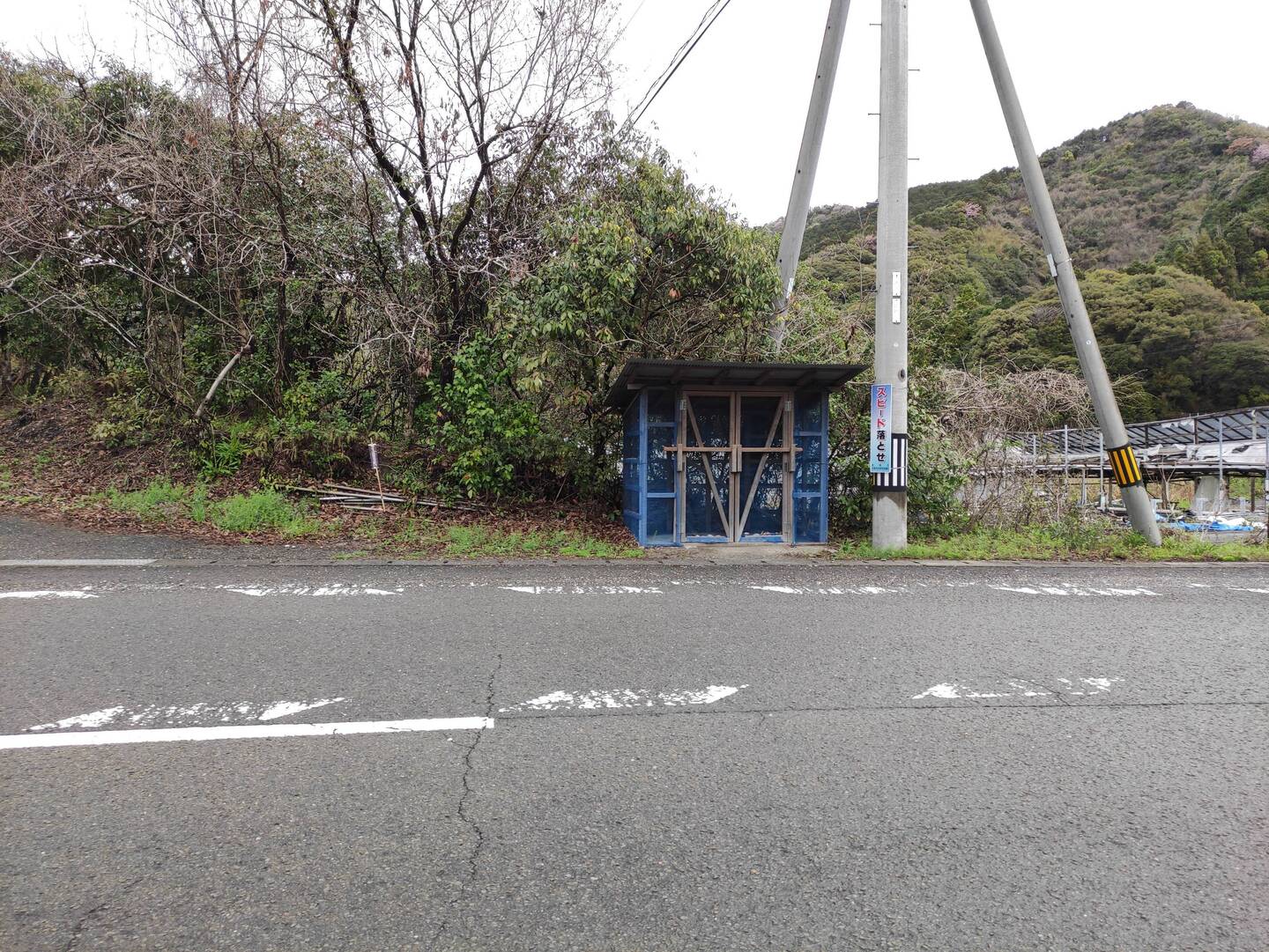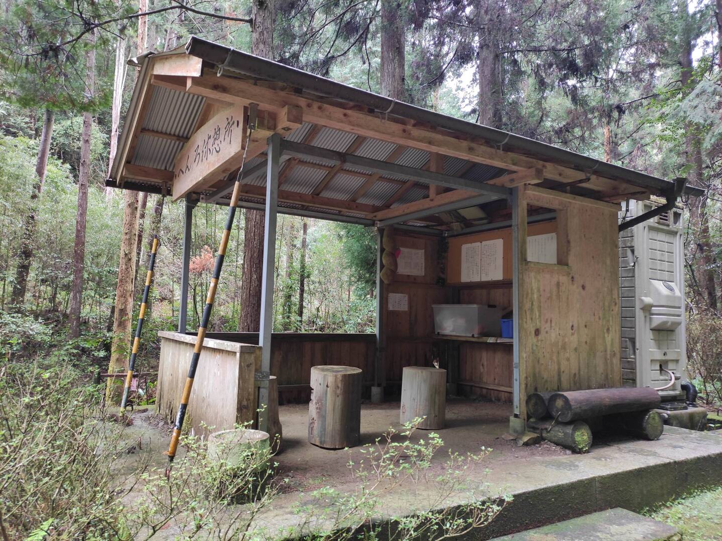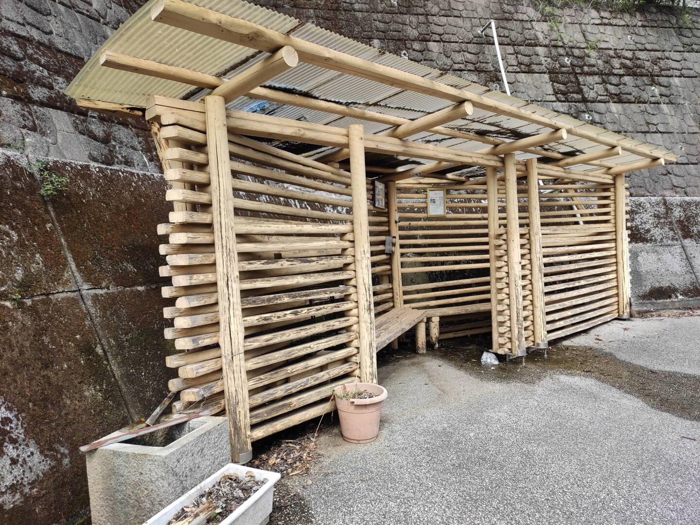 Abri assez grand avec banc pas de toilettes ni d'eau