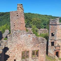 Heute Morgen waren wir an einer Burg die haben wir schon einmal besucht ,im Winter allerdings war sie da geschlossen. Heute sind wir hoch normalerweise braucht man angeblich 15Minuten ,wir warenLeer más
