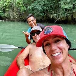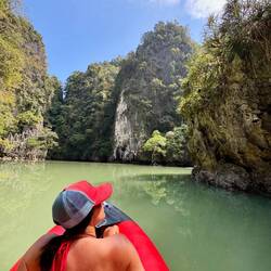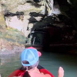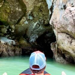 Barely squeezing out of the Bat Cave with the kayak (yes there were bats lining the ceiling in the middle of the cave - hence its name)… all three of us laid flat for an exit that will be forever etched into my mind. The cave ceiling was inches from our noses and I even wished I’d skipped breakfast to squeeze through. 😳 But success. We emerged into the lagoon and my breath escaped me. I’ve tuned into CC’s video but this…. This… I can see why Alex is passionate about what he does and sharing it with others.