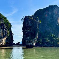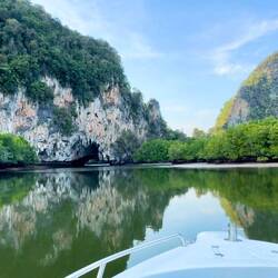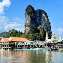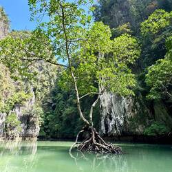 Next few stops on the M&A Andaman Sea tour (almost like T-Swifts Era Tour, I’m sure) included James Bond Island, a smaller island, lunch/visit at a floating village (established 200+ years ago), and a S-shaped cruise through mangrove trees.