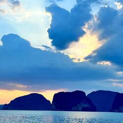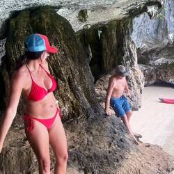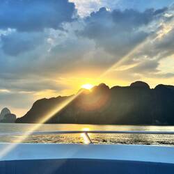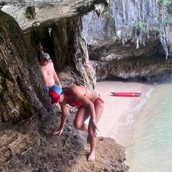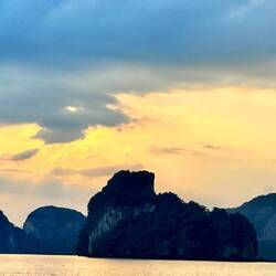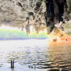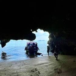 Next stop was a small beach/island that was busy during our first pass… but the coast was clear for our second attempt. This island stop allowed our boat captain to back in and let us off right on the beach. Alex says people can go back into this cave and camp. Perfect place for a BBQ and if it rains, there is a smaller cave off to the side for shelter. We didn’t stay long enough for a BBQ as the sun was beginning to set and it was time to get into place for the grand finale… the sunset, one more cave and then the bioluminescence water show!Read more