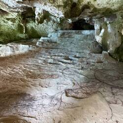 The exterior overhangs were equally impressive… and kept us intrigued as we kayaked around the perimeter of the island until we made our way to a small bay. We beached ourselves and Alex took us to an “upper” cave (a cave above the water?), where we climbed about to another viewpoint. 😍