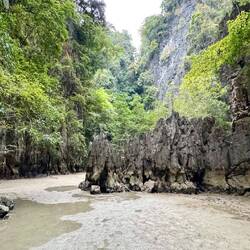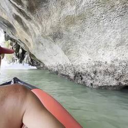 The day started about 12:30pm from Monah Pier. From there we zoomed to Hong Island where we kayaked through two caves (Bat Cave and Oyster Cave) to their respective lagoons, and then kayaked around the outside of this huge island under the limestone overhangs. The sights and sounds… untouched by humans. Perfectly balanced.