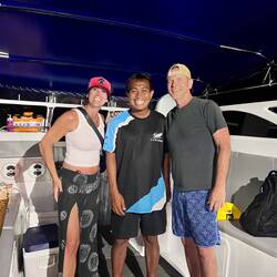 After surviving the sequel to Thirteen Lives, our jet boat sailed off to enjoy a sunset only a God can be responsible for. Alex brought us a bottle of bubbly for our honeymoon, so I enjoyed a glass and M had a Red Bull to get him fired up for this last part… bioluminescence.