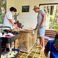 Coffee, breakfast and then time by the pool / beach until it was time for one last massage. Thankfully these massages were one of theeeeee best of the trip. I even got my dogs cleaned up and polished by probably one of the nicest ladies we’ve met. The cherry on top was her granddaughter showing up after school, so happy and chatty, and practicing her English with me and Mike. Typically I like peace and quiet for times like these, but this little girl had a wonderful spark about her so she got a pass. 😉