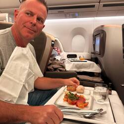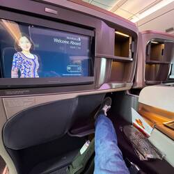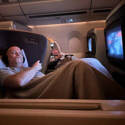 Mike didn’t sleep much on the journey so he’s racked out as I type away here. Could have been the glasses of wine with meals, welcome mimosas and a Singapore Sling for the assist to help my slumber on the planes. 🤔 His sleep issues may have stemmed from the James Bond, Mission Impossible or John Wick flicks he watched. 😆