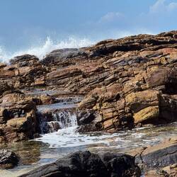 At the actual point… the waves put on a show, as they forcefully hit the rocks with a Vegas-like finish. We tried to capture but no luck … gave it a good ol’ fashioned try though! As we walked closer to the rocks, little waterfalls were many, providing a constant flow of water down the rocks, like Plinko.
