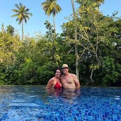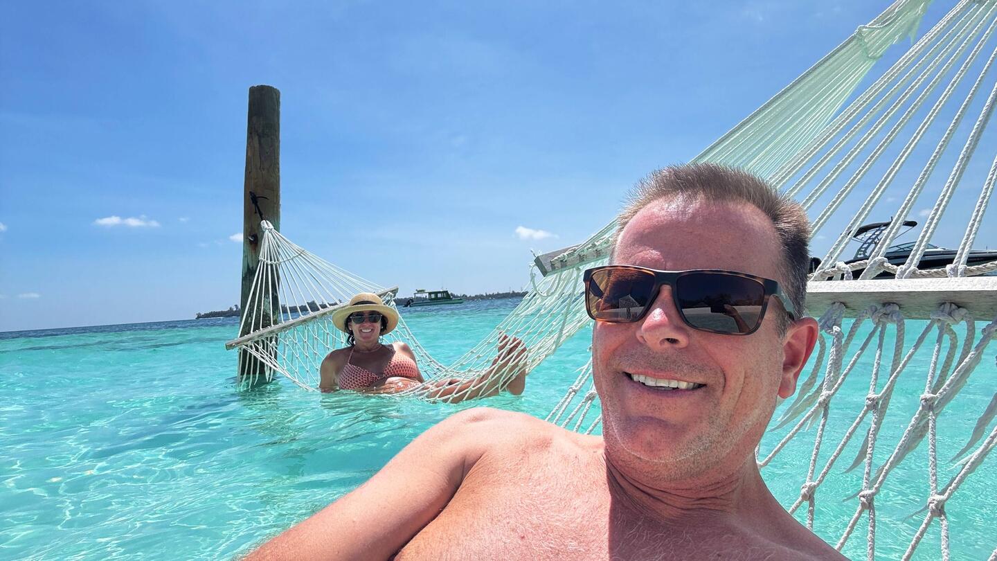 Catch-up sesh was at Sip Sip, a beach bar restaurant. Beautiful view, lovely pool and hammocks in the water. Naturally we gravitated to those and enjoyed the natural sway of the hammocks from the waves. There was also a little fish that followed Mike everywhere! Even the fish love this guy! 😍