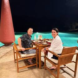 The planned finale for the evening was a moooo-vie under the stars. All jazzed up for Blue Planet EP5 … we settled in at 9:30pm (which is already pushing my bedtime) on some loungers, eager to geek out more on this blue ocean stuff. As the feature started we were lost … it was in Russian! The ol’ Ruskies strike again! We thought we left them all in Sri Lanka. Subtitles were cut off so to follow the pictures and random word that would pop up was ruf … we put in the effort but had to tap out. By the time we left, we were the only ones still there. Wonder if they thought we understood it. 🤔